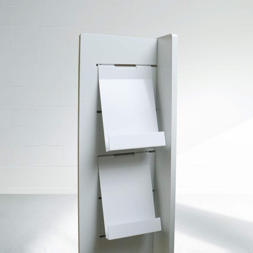 Une collection de supports de présentation robustes adaptés aux panneaux d’affichage avec lattes et à la tour Quattro.